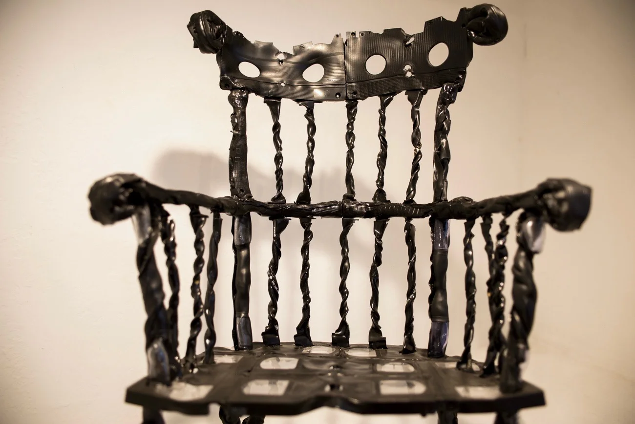 The above photo is almost confrontational. The motive behind this piece is that from afar we may think we see things clearly; however, upon closer inspection, we realize our most important memories have been changed in ways we may not even understand. Our experiences in life modify our memories without us knowing. This is neither good nor bad. It is what it is. We accept this. This photo captures my rocking chair piece, titled Distorted, face-on. Close up and personal, recognizing its flaws and accepting them.